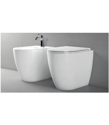ABITARE Coppia di sanitari filomuro bianco lucido in ceramica 35x53 cm - Azzurra Ceramica Comoda - Senza copri wc