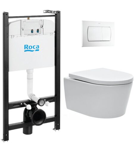 ROCA Pack wc Telaio Active + wc sat senza flangia e fissaggi invisibili + piastra bianca (ActiveSATrimless-1-DE) - Swiss Aqua Technologies