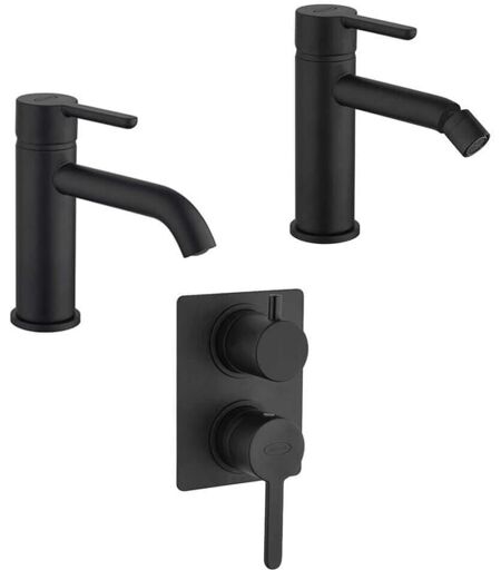 JACUZZI Miscelatori lavabo + bidet + incasso doccia con deviatore rubinetteria Sunset nero per piletta click clack