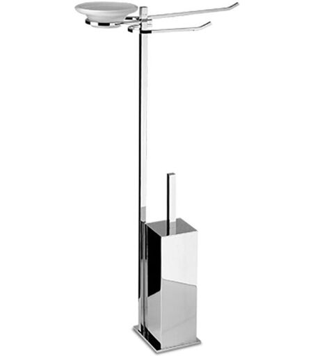 Piantana bagno water bidet quadrata di nostra produzione con porta sapone, porta salviette asciugamani bidet, porta carta igienica (porta rotolo) e porta scopino, realizzata in ottone cromato. Solida, stabile e con una base molto piccola di soli cm 12 x 10, la piantana bagno si adatta a tutti i tipi di arredamento moderni e non, completando la zona water e la zona bidet senza forare le pareti. Clicca qui per ricambio scopino wc compatibile Clicca qui per piantana porta asciugamani abbinata Piantana bagno water bidet quadrata ottone cromato base cm 12 x 10 - piantana bagno Piantana bagno water bidet quadrata di nostra produzione con porta sapone , porta salviette asciugamani bidet, porta carta igienica ( porta rotolo ) e porta scopino , realizzata in ottone cromato . Una piantana bagno molto utile e compatta che da sola arreda tutta la zona water e la zona bidet. Il porta sapone è in vetro acidato satinato, lo scopino bagno in ottone cromato ha la tazza interna in plastica estraibile e ...