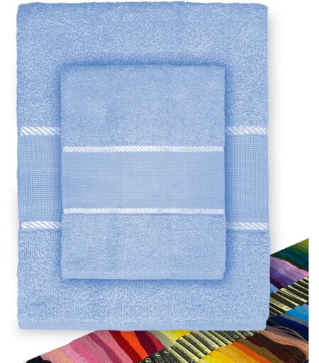 TEX FAMILY Set Asciugamani Spugna Tela Aida da ricamare Punto Croce 1+1 Viso E OSPITE con Filato in Omaggio Azzurro