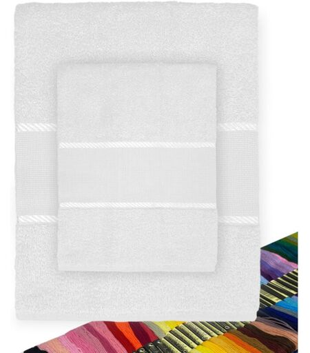 TEX FAMILY Set Asciugamani Spugna Tela Aida da ricamare Punto Croce 1+1 Viso E OSPITE con Filato in Omaggio Bianco