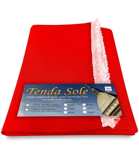 Tenda sole 'unito arancio' confezionata già pronta per l'uso realizzata in tessuto indistruttibile di acrilico. Rifinita nella parte superiore con puntina e occhielli in acciaio mentre nei lati orlo semplice e nella parte inferiore frangia abbinata. È dotata di ganci in plastica che agganciati agli occhielli in acciaio della tenda gli permettono di essere montata su qualsiasi tipo di bastone. Gli anelli in plastica hanno un diametro di 16 mm, mentre quelli in acciaio dove si agganceranno quelli in plastica hanno un diametro di 9 mm. La tenda non è stampata, come nel caso delle tende da sole economiche, ma il tessuto è costruito a telaio in tinto filo. È in tessuto acrilico che resiste ad alte temperature ed ha una durata di parecchi anni. -tessuto..................................................acrilico -funzione tessuto...................................coprente -composizione tessuto.......................100% acrilico -finitura superiore........................occhielli in acciaio ...