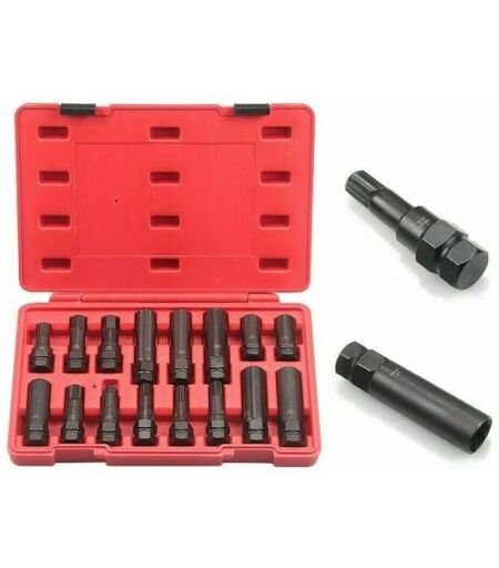 Descrizione prodotto Set 16 chiavi smontaggio montaggio dadi bulloni sicurezza antifurto ruote auto Set composto da 16 chiavi per lo smontaggio e montaggio dei dadi di sicurezza sulle ruote dell'auto. Misure come da foto Nota bene. Il colore della valigetta può variare ...