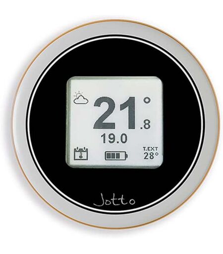 Descrizione Termostato Intelligente Compatibile Con La Maggior Parte Delle Caldaie E Gli Impianti A Radiatore O A Pavimento . Jotto È Completamente Regolabile In Locale Grazie Alla Ghiera Rotativa E Il Singolo Pulsante Che Facilita La Navigazione Del Menù. Con L’applicazione “ Jotto-Termo ” È Possibile Visualizzare E Programmare La Temperatura Del Cronotermostato In Tempo Reale Direttamente Dallo Smartphone. Jotto Starter Kit È Completo Di Tutto Il Necessario Per Iniziare A Controllare La Temperatura Della Tua Casa. Il Kit Comprende: 1 Jotto Termostato 1 Jotto Gateway 4 Anelli In Gomma Nei Colori Arancio, Giallo, Blu, Bianco 2 Supporti A Muro Con Bolla Livellante Integrata 4 Tappi A Pressione Per Fissaggio Supporti 4 Viti Di Fissaggio 1 Adesivo Per Fissaggio Gateway Alla Caldaia Manuale Di Installazione Jotto Per Verificare La Compabibilità Della Tua Caldaia/stufa Con Jotto Clicca Qui Caratteristiche: Termostato: Dimensioni: Diametro: 70 Mm, Spessore 35 Mm Colore: Bianco, Con N.4 Anelli In Gomma Colorati Tecnologia Senza Fili: Bluetooth 4.1 Ble Distanza Fra Termostato E Gateway: Massimo 15 Mt (30 Mt In Spazio Aperto) Range Di Lettura: Da 0° A 40° Precisione Di Lettura: +/- 0,1° Range Di Impostazione: Da 5° A 30° Range Di Incremento Di Temperatura: 0,5° Alimentazione: Batteria 3vdc Mod Cr2477 Fissaggio: Viti E Tasselli Su Staffa Con Bolla Livellante Integrata Gateway: Dimensioni: diametro: 70 Mm, Spessore 18 Mm Tecnologia Senza Fili: Bluetooth 4.1 Ble - Wi-Fi 802.11 B/g/n (2,4ghz) Distanza Fra Termostato E Gateway: massimo 15 Mt (30 Mt In Spazio Aperto) Range Di Funzionamento: da 0° A 40° Sistema Di Comando Caldaia: relè Con Contatto Pulito No 0,5a Fino A 220vac (Cavo 80cm Incluso) Sistema Di Comando Stufe A Pellet: Relè Con Contatto Pulito No 0,5a Fino A 220vac - Porta Seriale Ttl Tx-Rx Oppure One-Wire Con Protocollo Aggiornabile Alimentazione: Porta Micro-Usb Standard (Max 5vdc 0,4a) - Porta Mini-Usb Con Cavo Speciale (Max 5vdc 0,4°) - Da 90vac A 230vac 50-60hz Consumo 1va Con Cavo Integrato 80cm Incluso Fissaggio: viti E Tasselli E Adesivo Speciale Su Staffa Con Bolla Livellante Integrata ...