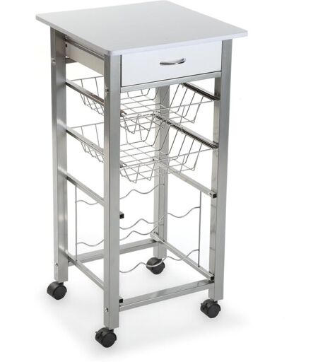 COSE DA CASA Carrello da Cucina con Piano Lavoro bianco Cassetto Ripiano e Porta Bottiglie Carrello 4 ruoteMultifunzionale in Legno e Metallo