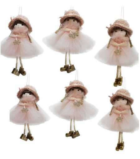 COSE DA CASA Set di 6 Bamboline da Appendere all'Albero di Natale Con Cappello Sciarpa Pellicciosa Rosa Gonna in Tulle e Piedi Pensolanti - Decorazioni Natalizie