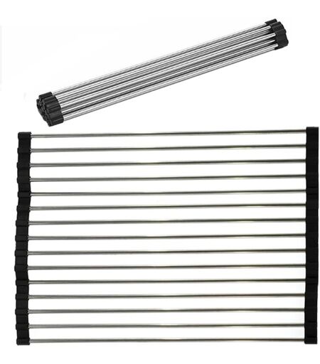 COSE DA CASA - Griglia per sopra lavello Scola piatti posate stoviglie frutta verdure cm 47x35 richiudibile salvaspazio cucina in accaio inox