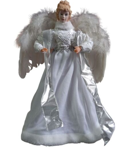 COSE DA CASA Angelo Decorativo con Ali h40 in Tessuto Bianco Punta per Albero di Natale e Paillettes pelliccia Decorazione natalizia