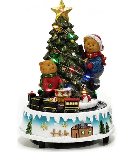 COSE DA CASA Giostra Carillon Natalizia con Luci Suoni trenino in Movimento Villaggio Albero con stella oro orsetti H.21,5 cm Decorazione Natale in Scatola Regalo