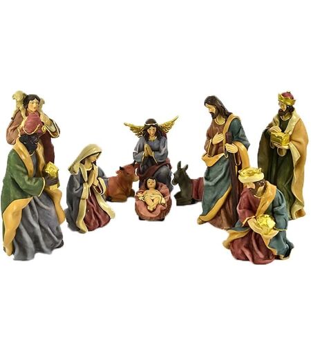 COSE DA CASA Presepe Natività Completa 10 Pezzi Effetto Juta Altezza Max 25 cm Sacra Famiglia con Giuseppe maria bambinello Re Magi, Angelo, Pastore,bue asinello