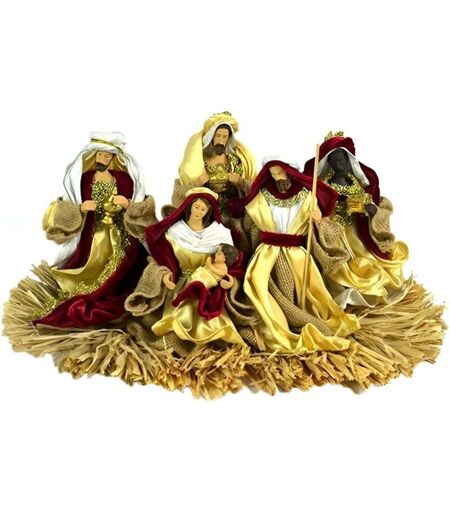 COSE DA CASA Presepe completo sacra famiglia Natalizia in Stoffa Natività Decorazione Raffinata con Giuseppe Maria Gesù Bambino e 3 Re Magi vestiti in tessuto su