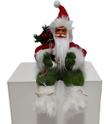 COSE DA CASA Babbo Natale seduto da Appoggio 38 cm Decorazione Natalizia in Tessuto Rosso e Verde con Sacco Regali porta i doni ai bambini Barba Occhiali,