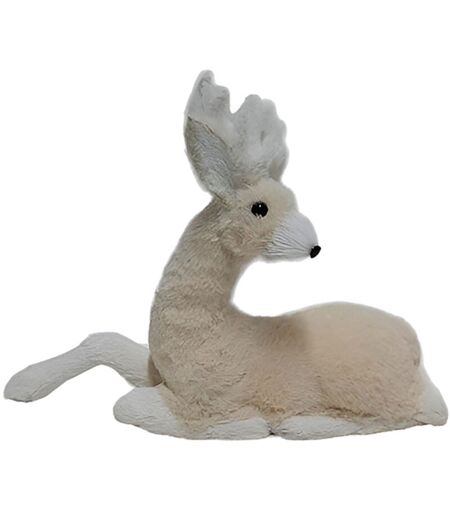 COSE DA CASA Renna seduta cerbiatto Natalizia cm 35x33 Pellicciosa Bianca Beige Decorativa per Natale Perfetta per Allestimenti Grande con Corna