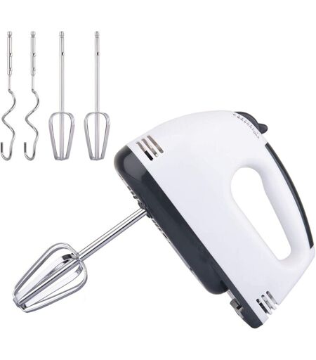 Pratico sbattitore elettrico maneggevole e leggero, ottimo per realizzare dolci, creme e impasti. Dotato di 2 fruste ottime per montare uova e creme e altre 2 per impastare, prevede ben 7 diverse velocità di lavoro ed è molto sicuro grazie al pulsante di espulsione. Il prodotto viene fornito di istruzioni in inglese, le dimensioni sono circa 18 x 11.7 x 7 cm ed il peso è di circa 435 gr, estetica e colore del frustino variano in base alla disponibilità di magazzino. ...