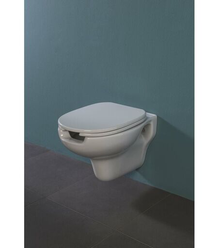 Vaso sospeso ergonomico della serie Confort di Alice Ceramica. Il wc è in ceramica bianco lucido, cm. 55x37,5xh26. Ha una apertura frontale per facilitare l'igiene della persona a mobilità ridotta. Wc sanitario sospeso ergonomico in ceramica, colore bianco lucido. I sanitari della serie Confort, hanno un design particolare specifico per le persone disabili e persone a mobilità ridotta. Non sono compresi con il wc sospeso e sono da acquistare separatamente:il fissaggio rapido per wc sospeso; la staffa per wc sospeso, se non integrata nella cassetta incasso; la cassetta per lo scarico, nella versione incasso (con o senza staffe di fissaggio incluse) o nella versione installata a muro; la protezione antiurto ed acustica, facoltativa ma utile per l'installazione e la cura del sanitario; il copriwater originale bianco lucido; la tavoletta wc è nella versione avvolgente con chiusura standard con apertura frontale ...