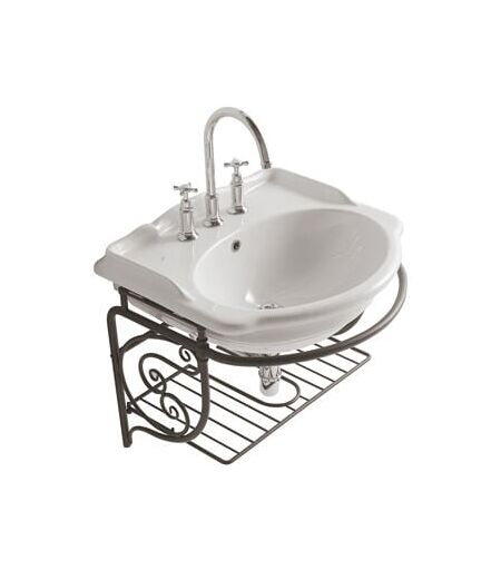 La composizione struttura+lavabo a terra della serie Paestum di Ceramica Globo comprende:la struttura sospesa cm. 61x54xh47 in metallo anticato con un piano di appoggio e porta asciugamano integrato; il lavabo monoforo, cm. 62x54xh22 in porcellana, ma è comunque predisposto per i tre fori ai due ...