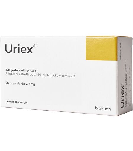 Uriex - Descrizione Integratore alimentare a base di estratti botanici, probiotici e vitamina C. - Ingredienti D - mannosio, e.s. di mirtilli (Vaccinium macrocarpon Aiton, frutti), capsula (agente di rivestimento: idrossi - propil - metilcellulosa; colorante: complessi delle clorofille e delle clor… ...