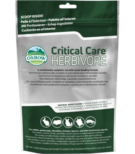 Critical Care Herbivore - Formula completa di alimentazioni assistia per erbivori - Descrizione Formula speciale che contiene tutti i nutrienti essenziali e alto contenuto di fibre per aiutare il normale supporto fisiologico e digestivo dello stomaco. Indicato per erbivori in stato di nutrizione ca… ...
