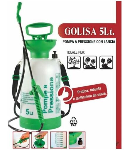 Pompa a pressione a zaino per uso in spalla con irroratore Golisa 5 LT . Caratteristiche : Pratica e utile pompa a zaino ideale per acqua, fertilizzanti, pesticidi , diserbanti ma anche per disinfestazione. Il suo uso è molto pratico grazie alle bratelle che permettono di portalla a spalla. Estremamente leggera ( peso a vuoto solo 1 kg) ma robusta allo stesso tempo. Serbatoio da 5 litri a pieno carico. Filtro nel collo del serbatoio rimovibile e lavabile. Materiale PVC resistente. Lancia con tubo. Ugello regolabile. Maniglia superiore di pompaggio robusta. Colore bianco e verde. Cinta regolabile con imbottitura spalle di colore nero. Si può utilizzare in orto, giardino, vivaio ecc.. Si consiglia di tenere la testa di spruzzo stabile e spruzzare nella stessa direzione del vento. Misure: Larghezza massima comresa leva 20 cm. Altezza massima compresa lancia appesa 60 cm senza lancia 45 cm Profondità 19 cm. Lunghezza lancia 60 cm. Lunghezza tubo 150 cm circa. Istruzioni per l'uso : ...