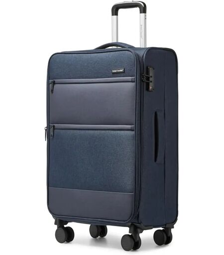 British Traveller Carry Case Medium 4 Rolls bagaglio a mano leggero tessuto morbido per bagagli con lucchetto TSA blu ...