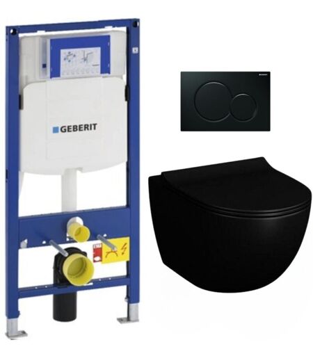 Geberit Pack Telaio WC + tazza nero Vitra SENTO senza flangia, fissaggi invisibili + Sedile + Piastra nera (GebBlackSento-A)