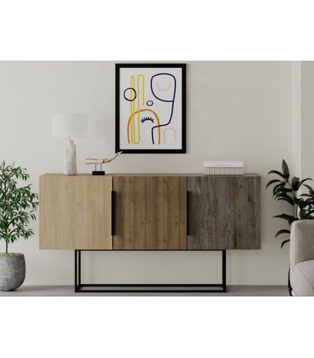 ABITARE Madia 150x79,5 h cm rovere chiaro, rovere scuro, caffè scuro con tre ante - Trivento