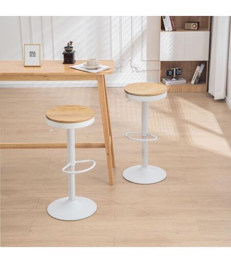 NONE Kidol & Shellder Sgabelli da Bar Set di 2 Bianca, Legno Massello, Sgabelli Alto Cucina Bancone Regolabili in Altezza, Metallo Base Facile da Montare,