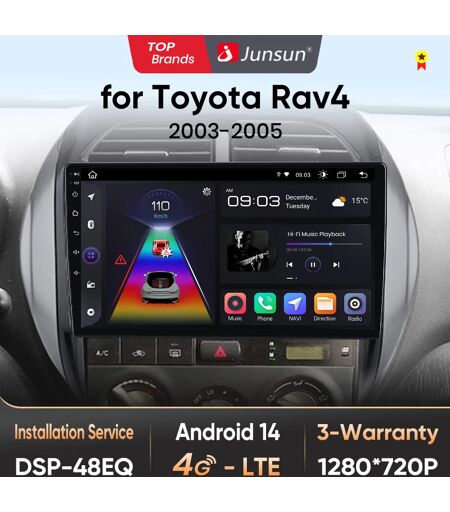 Junsun AI CarPlay 4G Android 14 Autoradio per Toyota RAV4 2003-2005 Lettore multimediale WiFi GPS Navi TouchScreen 360 fotocamera RDS