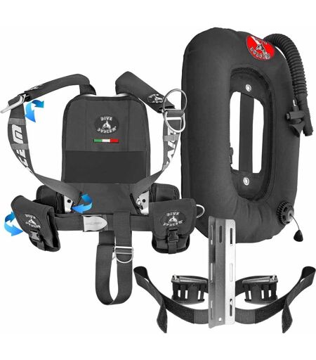 Senza fibbie e senza cuciture ma cinghie completamente regolabili. Un'imbracatura a cinghia singola con vestibilità super rapida e comoda rimozione dell'attrezzatura.Allarga gli spallacci del Quickly e indossalo, quindi tira entrambe le cinghie in vita per regolare l'imbracatura. Ecco fatto, sei pronto per partire. Quando devi rimuovere l'attrezzatura basta aprire la fibbia della cintura in acciaio inossidabile e allargare gli spallacci per rimuovere facilmente l'imbracatura Quickly.L'anello a D e le tasche sono sempre a posto:- Anelli a D in acciaio inossidabile e tasche laterali dell'imbracatura Quiclky fissate sulle staffe del Quickly ma non si muovono con la fettuccia. Il sistema Quickly Harness consente alla fettuccia di muoversi sotto gli anelli a D e le tasche, in modo che siano perfettamente a posto anche se la cinghia è in movimento.Nuova tasca per indicatori di superficie per piastra posteriore con viti nascoste in acciaio inossidabile:- Il nuovo design della tasca della piastra posteriore SMB del Quickly nasconde le viti a basso profilo x8 M6 in acciaio inossidabile che fissano la tasca alla piastra posteriore. Un design più bello che protegge la tua tuta dallo sfregamento.Ala della cellula d'aria:- Stile ciambella da 30 libbre, cella d'aria solo serbatoio singolo.- Cella esterna a doppia cucitura (cuciture piatte) per un'estrema durata e resistenza.- Calotta esterna in Cordura® 1000) con camera d'aria interna intercambiabile dall'utenteGonfiatore e valvole:- Gonfiatore tradizionale a pistone- Tubo di gonfiaggio corto con tubo ovale morbido e filo metallico interno- 1 Valvola di sovrappressione e scaricoSpecifiche:Il peso:- 4,5 kg se Contropiastra Inox e STA- 2,5 kg se Contropiastra Alluminio e STA- 1,4 kg se Backplate in Fibra di Carbonio e STA ...