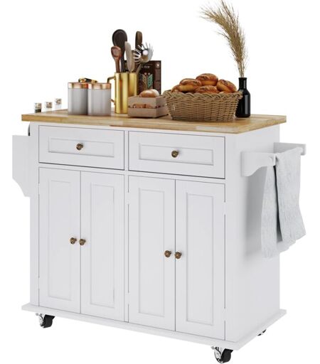 SOGES Cucina ad isola Carrello da cucina Credenza Buffet Bar Grande piano di appoggio Portasciugamani su ruote Portaspezie 2 cassetti Armadietto a 2 ante