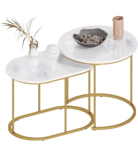Set di 2 tavolini impilabili - tavolo rotondo diametro 50 cm, tavolo ovale 60 x 36 x 43,5 cm Carico del prodotto dei due tavolini - max. capacità di carico fino a 30 kg Elegante set da tavolo impilabile: look moderno per qualsiasi stile di stanza Usi flessibili: per soggiorno, camera da letto, corridoio, ecc. Design salvaspazio: tavolino impilabile e facile da montare ...