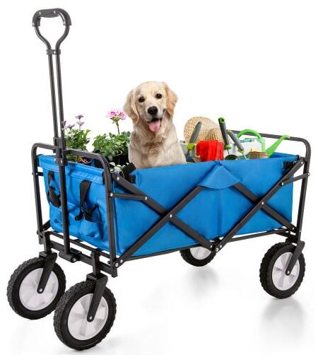SOGES Carrello pieghevole per tutti i terreni, carretto pieghevole per esterni, carretto da giardino, portabicchieri in rete, maniglie regolabili, borsa in