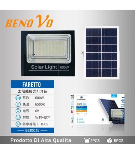 BENOVO Nuovo Faro solare LED 80W 120W 200W 400W 600W Sensore Crepuscolare 150Lm/W ip66 600