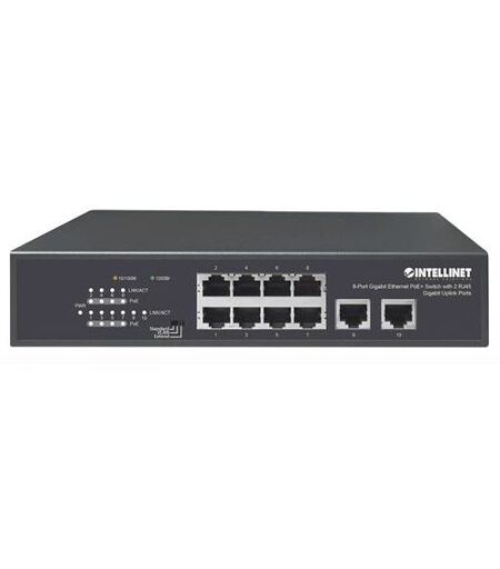 Intellinet - Switch Ethernet Gigabit 8 Porte PoE+ con 2 porte RJ45 Gigabit Uplink
