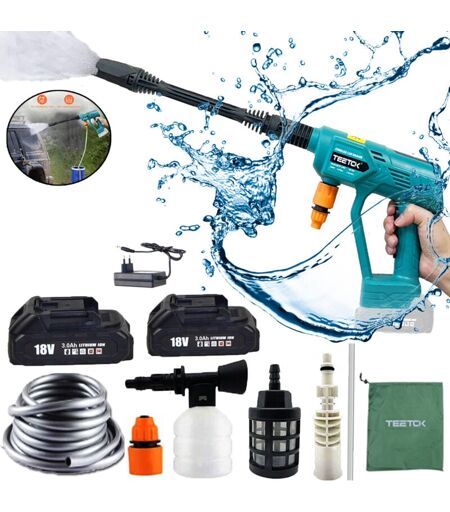 TEETOK Idropulitrice elettrica,High Power Jet Wash con manico per idropulitrice senza fili, con 2 x 3000mAh e caricabatterie, per il lavaggio di giardini,