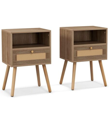 RELAX4LIFE - Set di 2 Comodini per Camera da Letto, Comodino Piccolo con Cassetto in Rattan, Stile Boho Chic, Tavolino per Soggiorno e Camera da