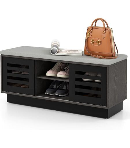 RELAX4LIFE - Panca Scarpiera Legno con Cuscino, Panca Porta Scarpe con 6 Livelli e 3 Ripiani Regolabili, 2 Porte Scorrevoli, Risparmio di Spazio,