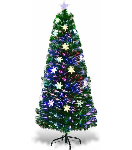RELAX4LIFE Albero di Natale Artificiale 150 cm con Luci Colorate in Fibra Ot-tica e Addobbi, Rami Folti e Realistici in pvc, Stella e Fiocchi di Neve a led,