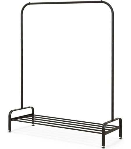 Informazioni su questo articolo # Soluzione di spazio ottimizzata # Il nostro appendiabiti freestanding utilizza un design 2 in 1, che combina le aste per abiti e il ripiano inferiore in un unico elemento. L'appendiabiti offre la possibilità di riporre camicie, abiti, pantaloni, scarpe e accessori. # Dettagli curati # La barra trasversale superiore con clip antiscivolo impedisce ai vestiti di cadere. I quattro piedini regolabili nella parte inferiore si adattano a diverse altezze del pavimento e forniscono ulteriore stabilità. # Materiale selezionato # Questo appendiabiti è realizzato con tubi metallici spruzzati di plastica, che garantiscono una lunga durata. Inoltre, la traversa ha una capacità di carico di 10 kg e può trasportare 15 vestiti, mentre la scarpiera ha una capacità di carico di 20 kg e può trasportare 5 paia di scarpe. # Versatile # Questo appendiabiti minimalista non solo è adatto come deposito aggiuntivo per la presentazione di una boutique o come appendiabiti per ...