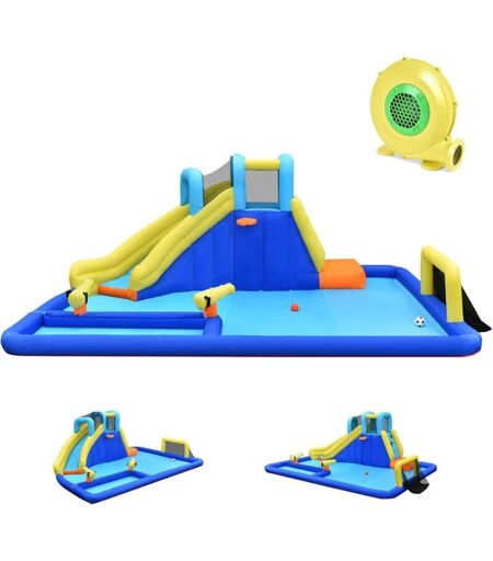 COSTWAY - Castello Gonfiabile per Bambini, con Scivoli, Muro da Arrampicata e Piscina, per 3 Bambini 3-10 Anni, con Borsa di Trasporto e Kit