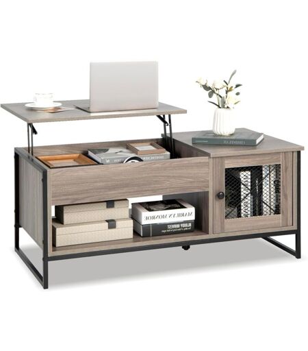 GOPLUS Tavolino da Caffè Sollevabile, Vano Portaoggetti Separato, Tavolo da Soggiorno a Gas in Stile Industriale Moderno, Grigio, 106 x 55 x 44,5 cm -