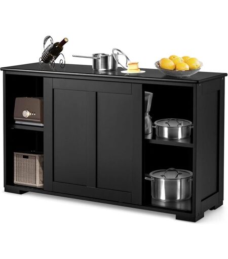 GOPLUS Cassettiera Bassa con 2 Ripiani, Regolabile in Altezza, Armadietto da Cucina con Porta Scorrevole, Contenitore in mdf, 106,7 x 33 x 62,5 cm (nero)