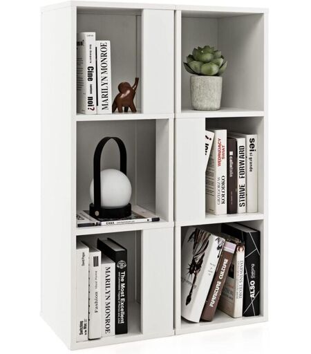 Informazioni su questo articolo # Ampio spazio di archiviazione # Per mantenere il tuo spazio ordinato e pulito, questa libreria è dotata di 6 cubi di archiviazione per ospitare libri, riviste, tazze, cornici fotografiche e altre decorazioni. Il design aperto facilita l'accesso ai contenuti dello scaffale. # Materiali selezionati # Realizzata in pannelli di truciolato di alta qualità, questa libreria offre buone prestazioni in termini di solidità e resistenza all'usura per un utilizzo a lungo termine. Le barre di supporto aggiuntive garantiscono una costruzione solida e una capacità di carico affidabile per lo scaffale. # Design sicuro # Dotata di un dispositivo anti-ribaltamento, la libreria può essere fissata al muro per una maggiore sicurezza e stabilità. Inoltre, i piedini antiscivolo sotto assicurano la stabilità della libreria evitando di graffiare il pavimento. # Utilizzo polivalente # Il nostro versatile mobile può essere utilizzato come scaffale per libri, espositore o ...