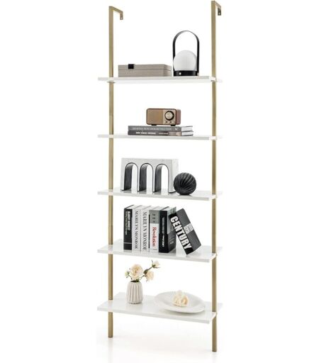 GOPLUS - Libreria Scaffale a Scala da Parete, Mensole a 5 Ripiani, Struttura in Metallo, Design Aperto, Portata di 150 kg, Arredo Soggiorno, Ufficio