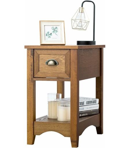 COSTWAY Tavolino da Salotto in Legno Massello, Comodino con 1 Cassetto e 1 Ripiano, Tavolino Basso da Soggiorno e Camera da Letto (56 x 33 x 58,5 cm, Legno,