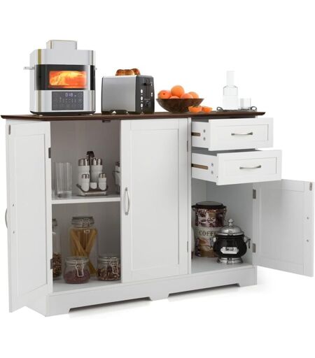 GOPLUS Buffet da Cucina, Mobile con 2 Armadietti a Porta, 2 Cassetti, Piano Spazioso, Mensola Regolabile, Mobile di Stoccaggio Moderno per Soggiorno,