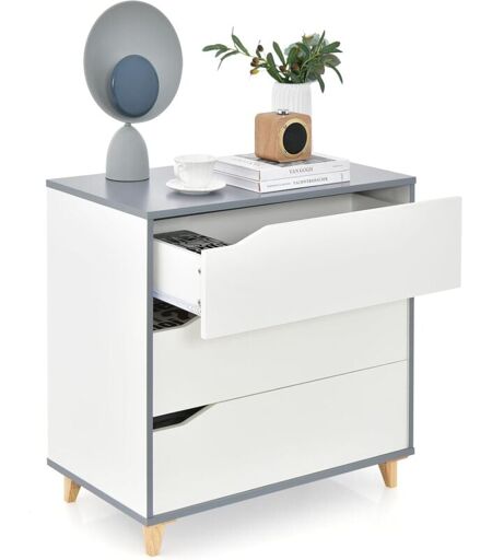 COSTWAY Cassettiera in Legno, Cassettiera Moderna con 3 Cassetti, Maniglia Incorporata e Dispositivo Anti-ribaltamento, Mobile in Legno per Camera da Letto,