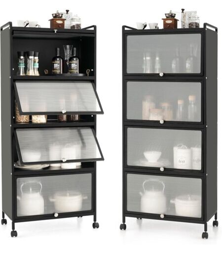Informazioni su questo articolo # Grande capacità a 5 livelli # Questo mobile portatile ha una superficie ampia e 4 ampi ripiani per soddisfare diverse esigenze. Puoi organizzare in modo ordinato il forno a microonde, la macchina per il caffè, le stoviglie, ecc. nella cucina, così come libri, piante, ornamenti e altro ancora nel soggiorno. # Costruzione robusta e stabile # Questo scaffale con ruote è realizzato in PC impermeabile e metallo verniciato a polvere, in grado di resistere a un uso prolungato senza rompersi. Grazie al doppio dispositivo anti-ribaltamento, il mobile può essere fissato saldamente al muro per maggiore sicurezza. Può sostenere fino a 75 kg in totale. # Infinite possibilità # Non è solo un mobile, ma può essere utilizzato anche come supporto per microonde, scaffale per libri, scarpiera, scaffale espositivo e altro ancora. Il look moderno e minimalista gli consente di integrarsi bene in qualsiasi spazio, ideale per soggiorno, studio, cucina e ingresso. # Facile ...