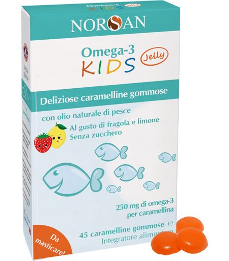 OMEGA - 3 KIDS Caramelline - Descrizione Deliziose caramelline gommose con olio naturale di pesce, da masticare. Al gusto di fragola e limone. Senza zucchero. - Ingredienti Olio naturale di pesce, dolcificanti (xilitolo e sorbitolo), acqua, gelatina, aromi naturali (fragola e limone), regolatore di… ...